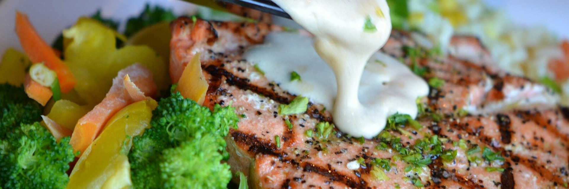 Deutsch-mediterranes Abendbuffet mit kalten und warmen Vorspeisen, Fleisch-, Fisch- und Nudelgerichten, italienischen Pfannengerichten und Desserts.